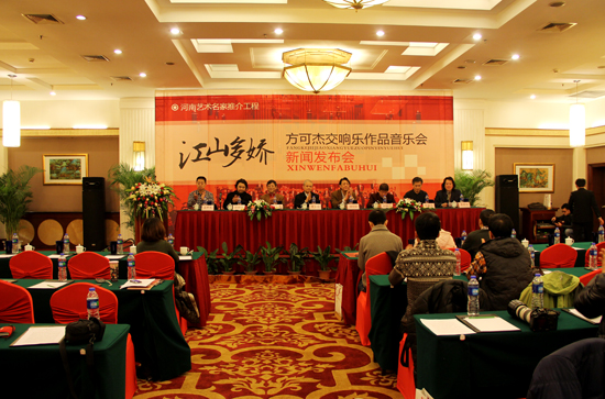 2012年12月23日上午,由河南省文化廳主辦,河南省藝術研究院、河南省曲劇團聯合承辦的“河南藝術名家推介工程”《江山多嬌——方可杰交響樂作品音樂會》新聞發布會在中州賓館舉行。