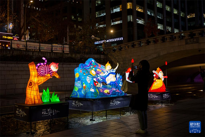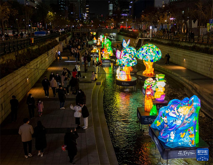 韓國首爾花燈節 繽紛彩燈點亮清溪川 來源:新華社 作者:王益亮 編輯人:李 燕 發布時間:2021-11-30 11月26日,人們在韓國首爾花燈節上觀賞花燈。一年一度的首爾花燈節26日在首爾清溪川廣場拉開帷幕,各式彩燈吸引人們駐足觀看。