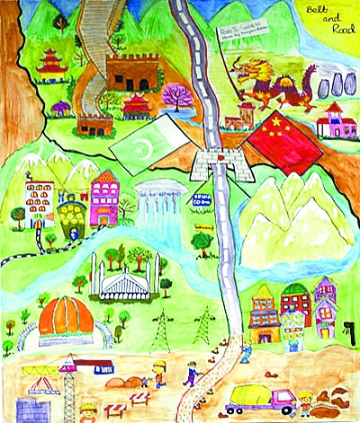“我眼中的‘一帶一路’——巴基斯坦學(xué)生繪畫比賽”部分獲獎(jiǎng)作品
