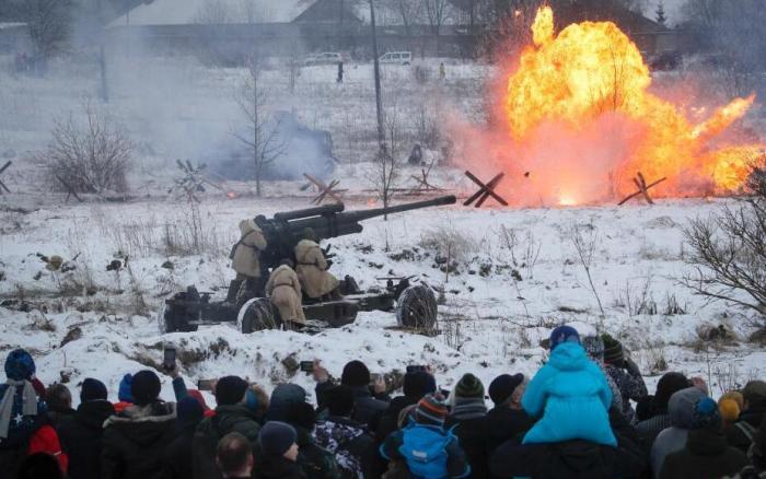 俄民眾重現(xiàn)二戰(zhàn)歷史情景 場(chǎng)面逼真大炮登場(chǎng) 編輯人:荊書(shū)劍 發(fā)布時(shí)間:2018-01-23 當(dāng)?shù)貢r(shí)間2018年1月21日,俄羅斯民眾在圣彼得堡郊外裝扮成德國(guó)納粹士兵,重演二戰(zhàn)歷史情景。圣彼得堡舊稱(chēng)列寧格勒,二戰(zhàn)時(shí)期蘇軍和納粹德國(guó)在這里進(jìn)行了艱苦的戰(zhàn)役。德軍從1941年9月9日開(kāi)始至1944年1月27日為止共圍城千余日導(dǎo)致高達(dá)十五萬(wàn)士兵和平民死亡。