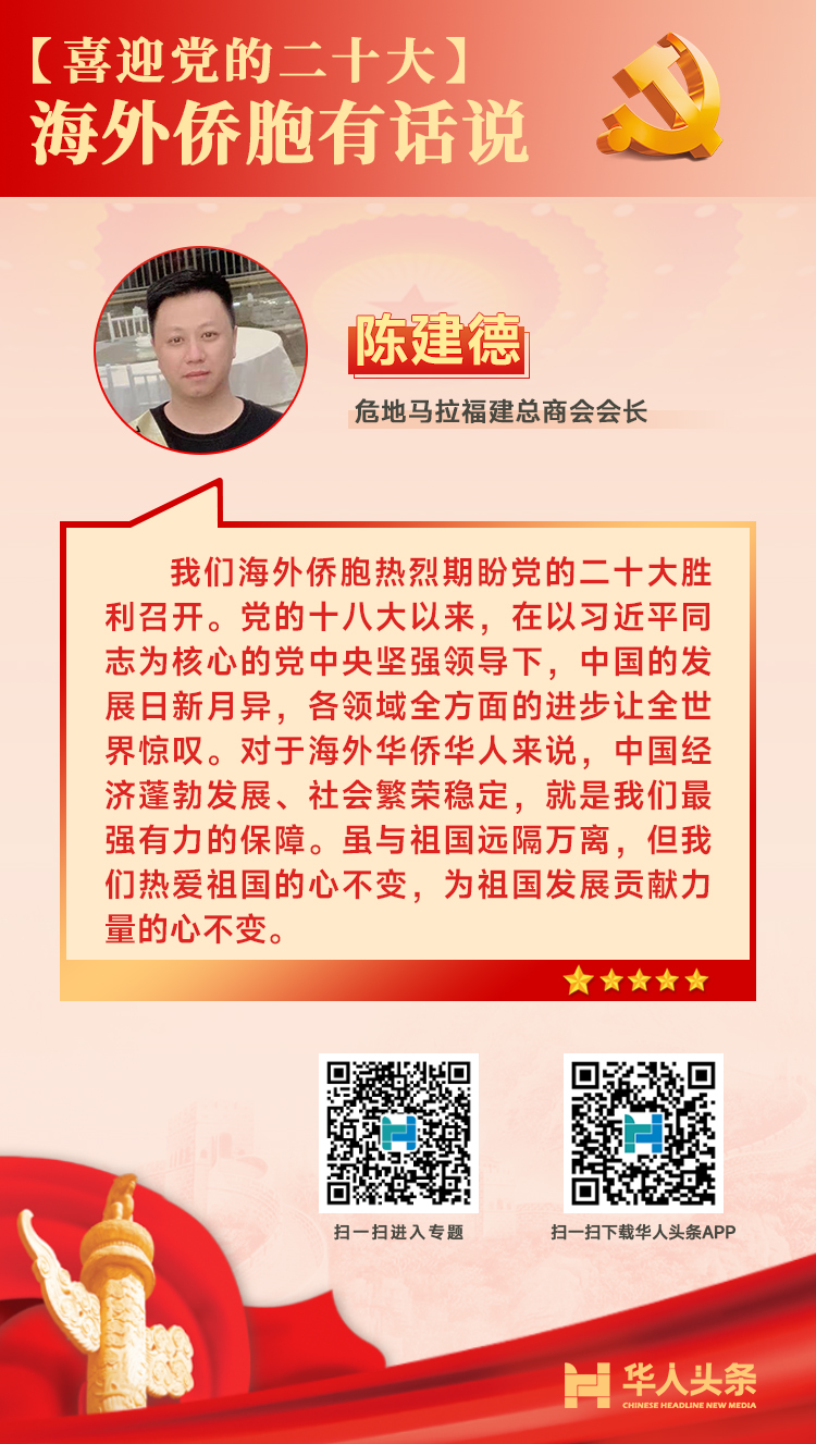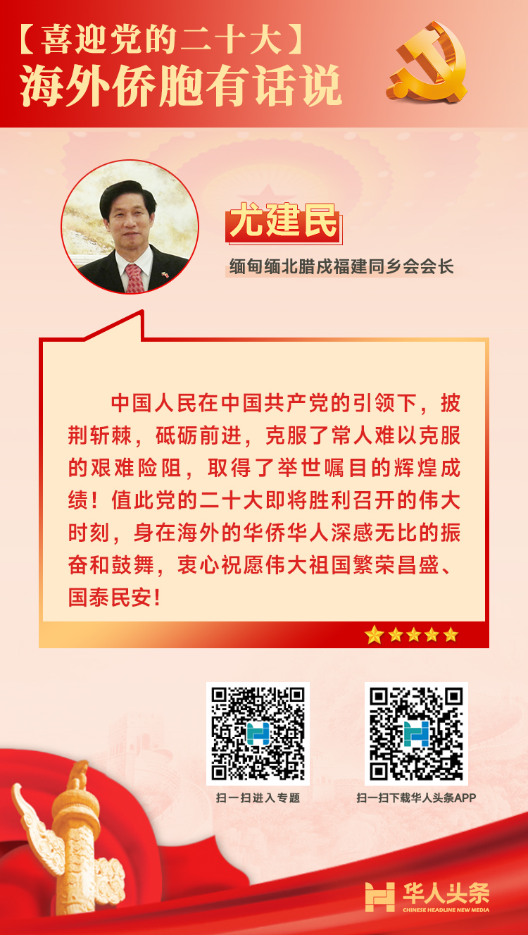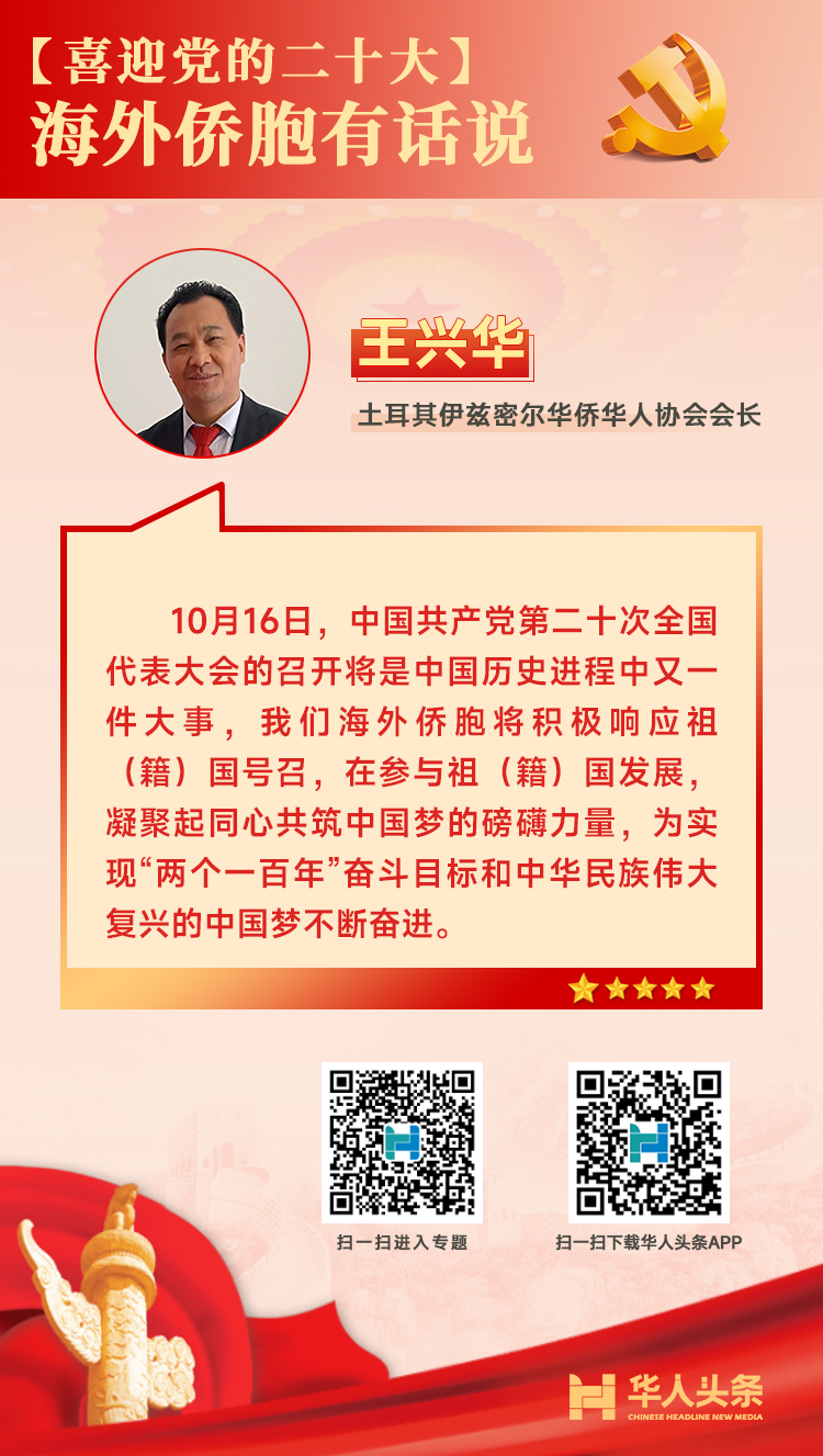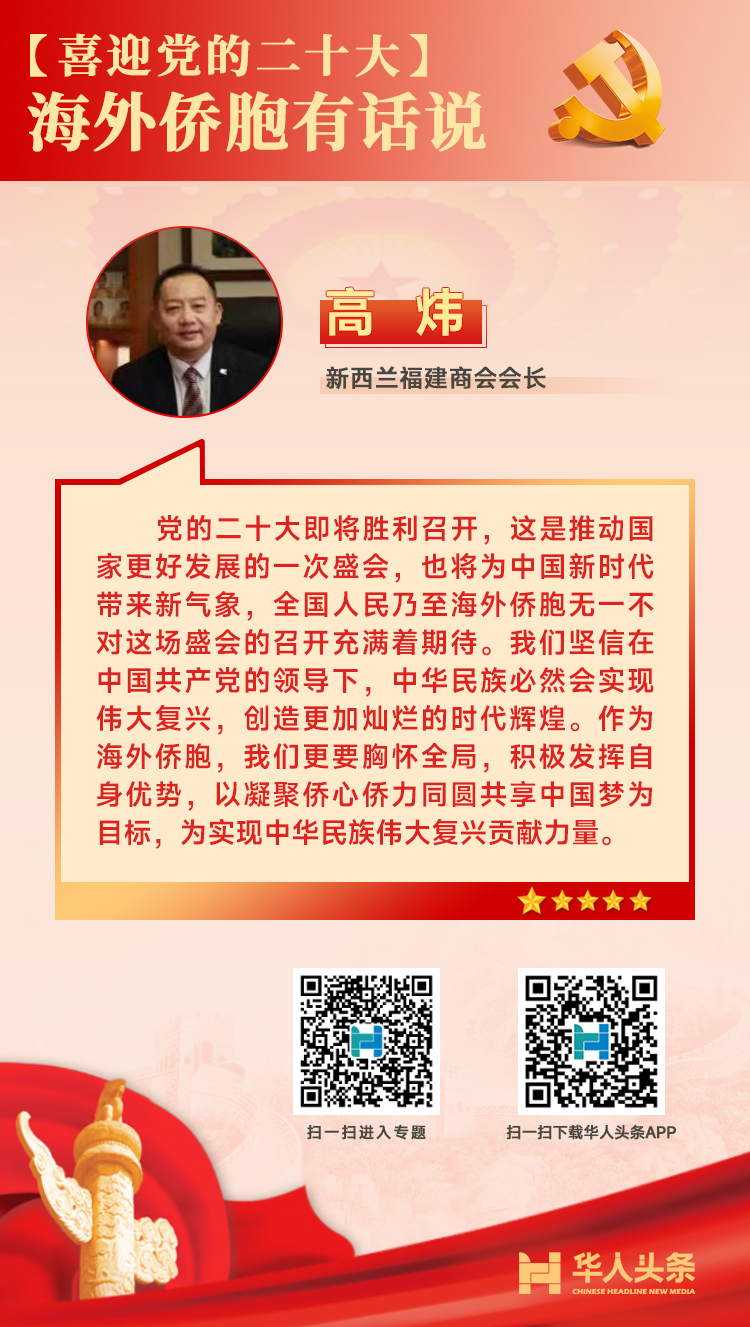 喜迎黨的二十大,海外僑胞這樣說 來源:華人頭條 編輯人:李 燕 發(fā)布時間:2022-10-16 編者按:中國共產黨第二十次全國代表大會于10月16日在北京召開。作為全黨全國各族人民邁上全面建設社會主義現代化國家新征程、向第二個百年奮斗目標進軍的關鍵時刻召開的一次十分重要的大會,二十大引發(fā)海外華僑華人的高度關注。對于即將召開的二十大,海外僑胞有哪些期待和感受?
