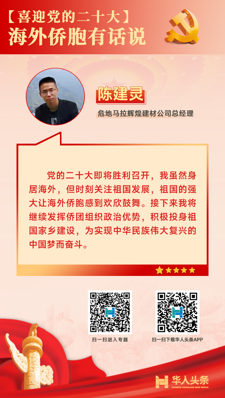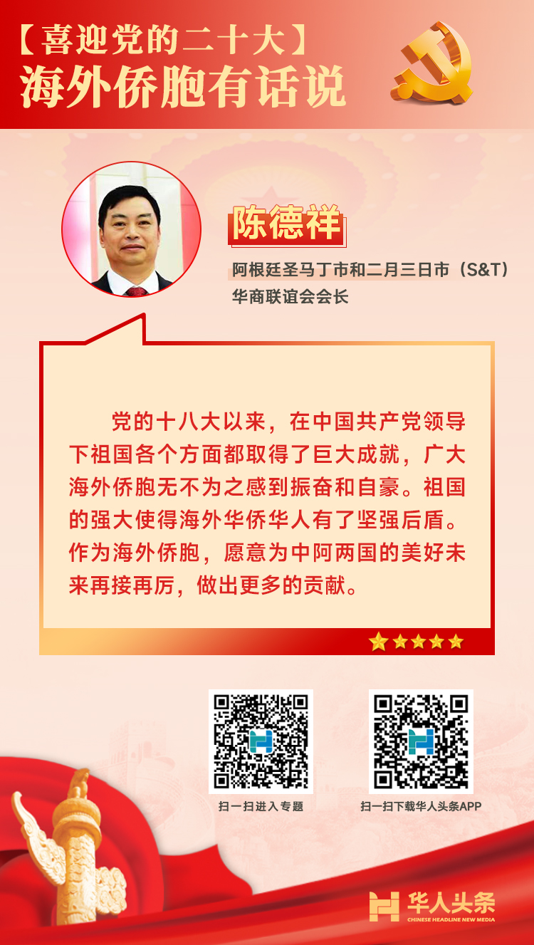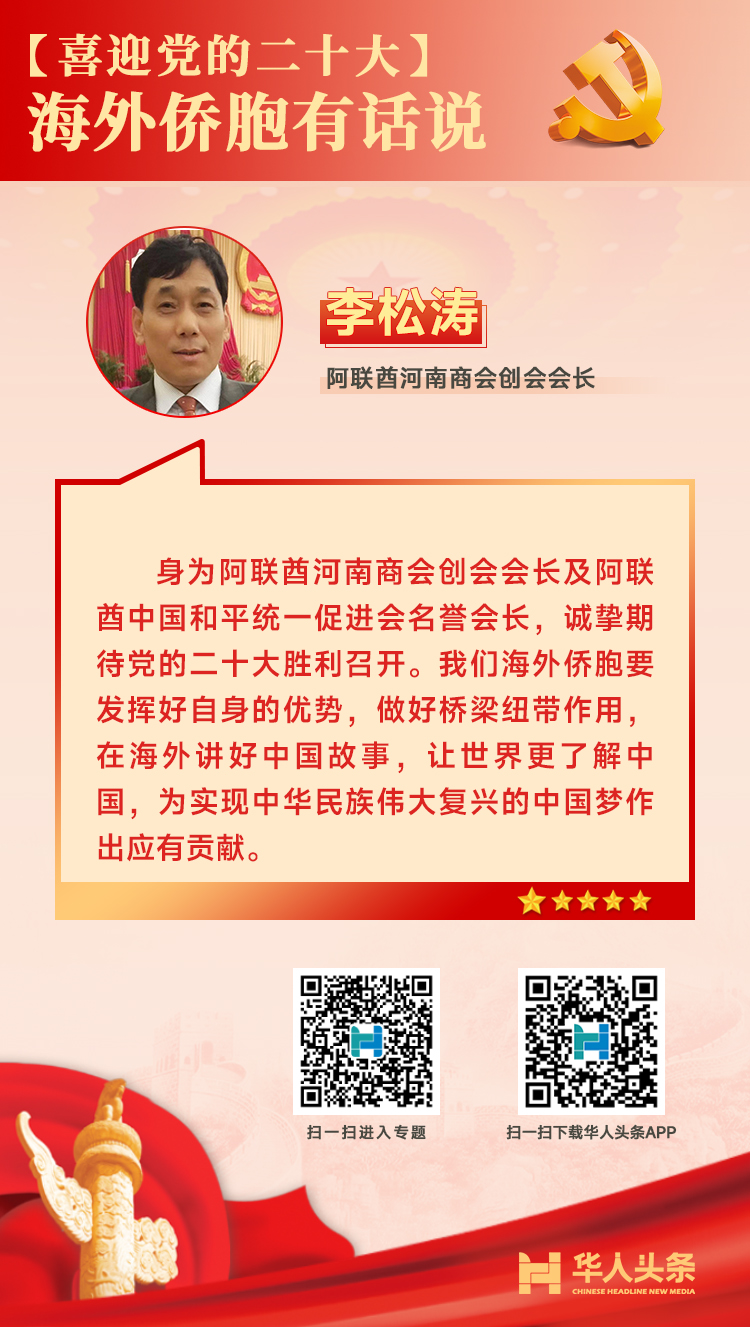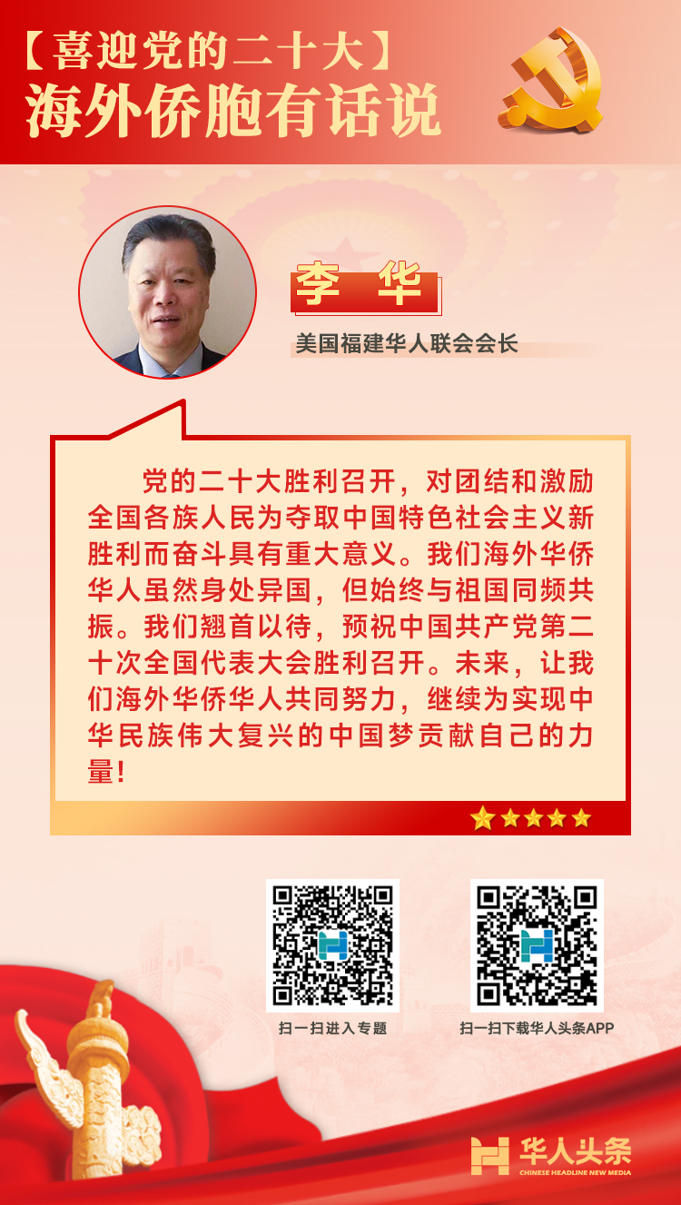 喜迎黨的二十大,海外僑胞這樣說 來源:華人頭條 編輯人:李 燕 發(fā)布時間:2022-10-16 編者按:中國共產黨第二十次全國代表大會于10月16日在北京召開。作為全黨全國各族人民邁上全面建設社會主義現代化國家新征程、向第二個百年奮斗目標進軍的關鍵時刻召開的一次十分重要的大會,二十大引發(fā)海外華僑華人的高度關注。對于即將召開的二十大,海外僑胞有哪些期待和感受?