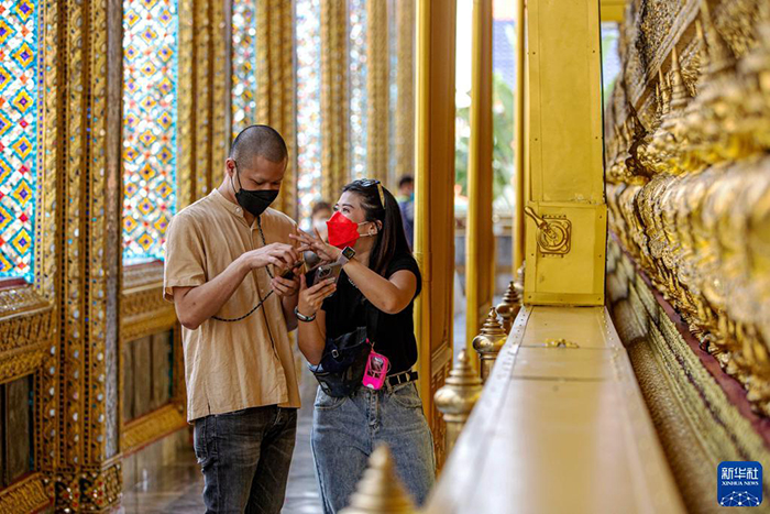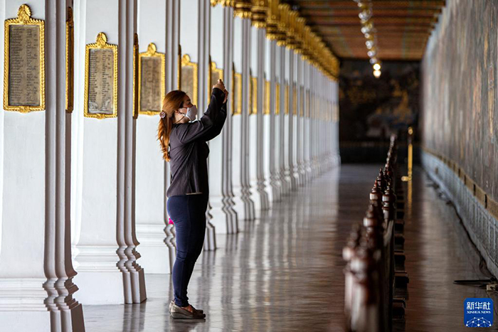 泰國(guó)曼谷大皇宮景區(qū)重開(kāi) 來(lái)源:新華網(wǎng) 作者:王騰 編輯人:李 燕 發(fā)布時(shí)間:2021-11-08 11月1日,游客在泰國(guó)曼谷大皇宮景區(qū)游覽。泰國(guó)曼谷11月1日起重新開(kāi)放因新冠疫情關(guān)閉的大皇宮景區(qū),允許民眾在遵守防疫措施的前提下參觀游覽。