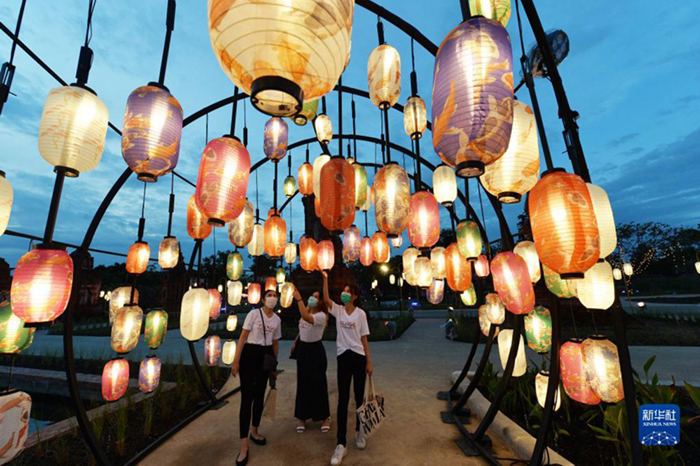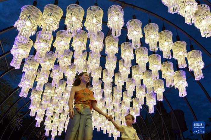 泰國北欖府 彩燈萬盞不夜天 來源:新華網(wǎng) 作者:拉亨 編輯人:李 燕 發(fā)布時間:2021-11-10 11月8日,游客在泰國北欖府舉行的國際燈籠美食節(jié)預(yù)展活動上游覽。泰國國際燈籠美食節(jié)將于11月12日至12月6日在北欖府舉辦。