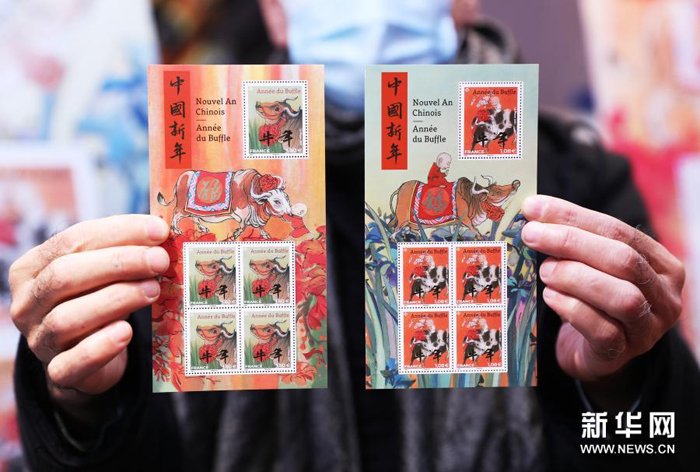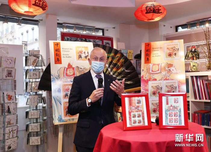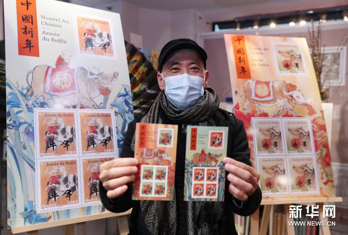 新華社巴黎2月6日電,為迎接中國農(nóng)歷新年,法國郵政公司6日在巴黎舉行牛年生肖紀(jì)念郵票發(fā)行儀式。