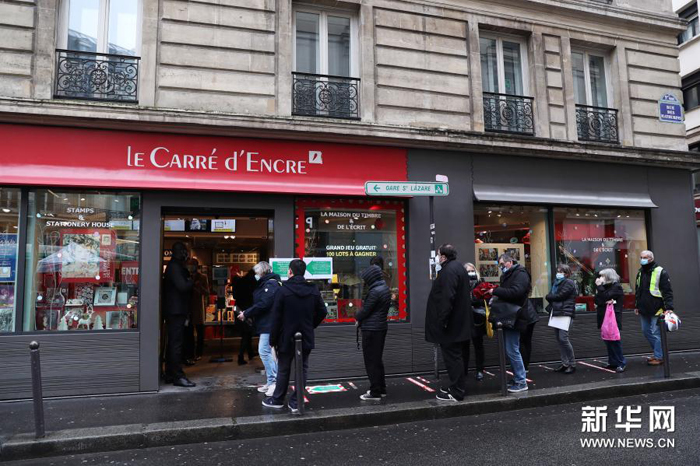 集郵愛好者在法國巴黎牛年生肖郵票發(fā)行儀式現(xiàn)場外排隊等待