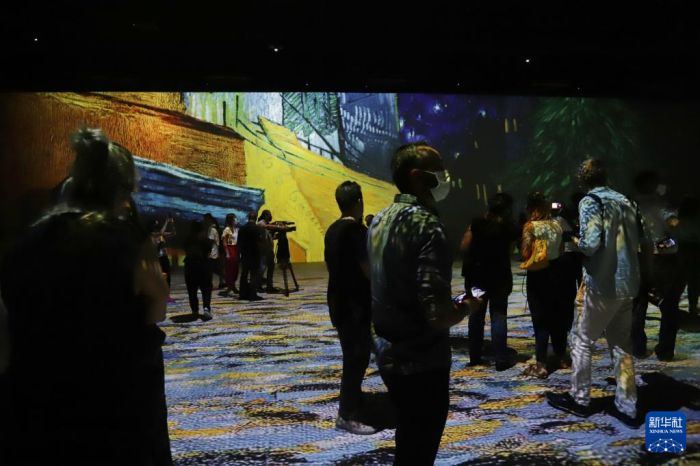 走近梵高 來源:新華社 作者:拉赫爾·帕特拉索攝 編輯人:李 燕 發布時間:2022-03-21 參觀者在巴西圣保羅參觀以梵高為主題的沉浸式多媒體展3月16日,圣保羅舉行以荷蘭印象派畫家梵高為主題的沉浸式多媒體展媒體預展。參觀者在巴西圣保羅參觀以梵高為主題的沉浸式多媒體展。