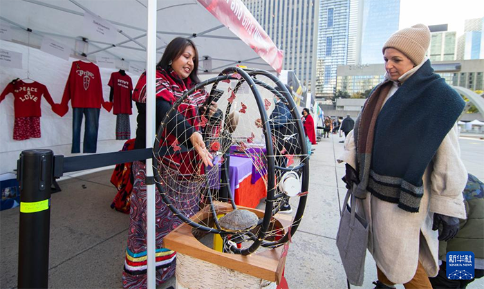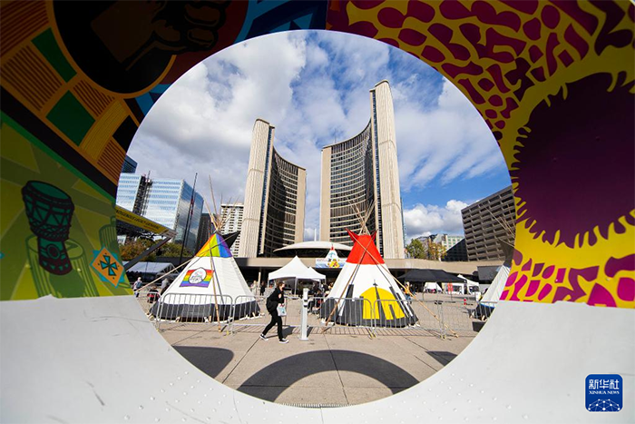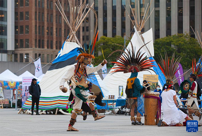 多倫多舉行原住民文化展示活動 來源:新華社 作者:鄒崢 編輯人:李 燕 發布時間:2021-11-08 11月4日,一名女子在加拿大多倫多市政廣場觀看一件原住民藝術品。當日,一場為期兩天的原住民文化展示活動在多倫多開幕。在加拿大多倫多市政廣場,原住民演員表演舞蹈。在加拿大多倫多市政廣場,行人走過原住民帳篷。在加拿大多倫多市政廣場,原住民演員表演舞蹈。