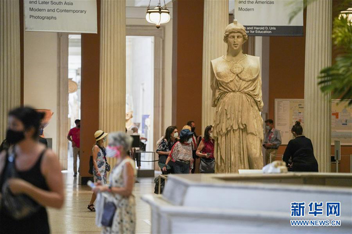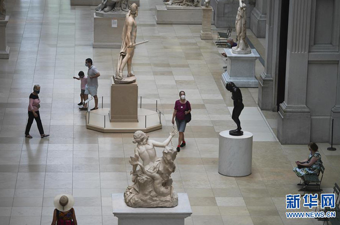 紐約大都會藝術博物館第五大道主館重新開放 來源:新華社 作者:王迎 編輯人:李 燕 發布時間:2020-08-31 8月27日,人們在美國紐約大都會藝術博物館第五大道主館參觀。當日,受新冠疫情影響關閉5個多月的紐約大都會藝術博物館第五大道主館對會員重新開放,并將于29日起正式對公眾開放。重新開放后,大都會藝術博物館采取多項措施防控新冠病毒,包括限制參觀人數、強制戴口罩、測量體溫等。