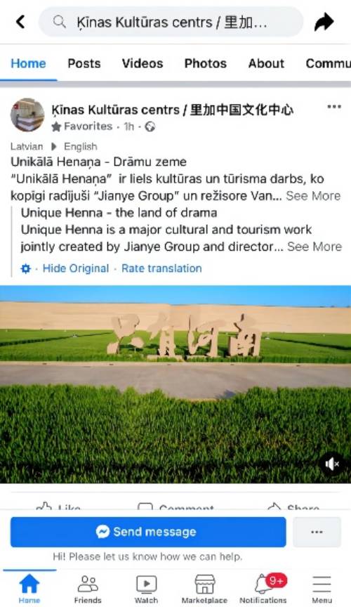 里加中國文化中心臉書平臺截圖:發布《只有河南·戲劇幻城》系列視頻