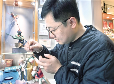 1月16日下午,當踏入省級非物質文化遺產面塑傳承人崔勇銳的工作室內,映入眼簾的則是一個充滿生機與創造力的世界——一面墻的展示柜內,擺放著琳瑯滿目、大小各異的面塑作品,令人目不暇接。
