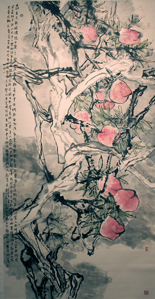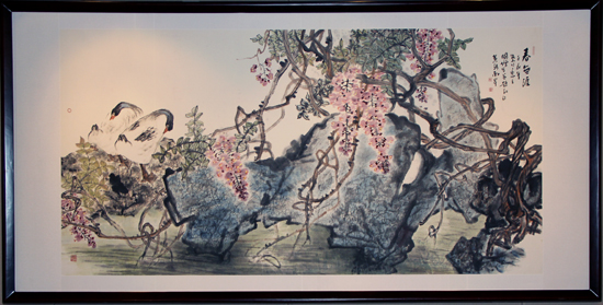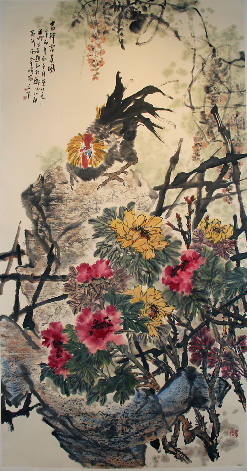 鮮美欲滴的桃,嬌艷多姿的花,凌厲欲斗的雞,豐滿恣意的紫藤,優雅恬靜的鵝....中國美術家協會會員、河南省國畫家協會副主席鮑國增先生的花鳥畫,喚醒觀眾的視覺、知覺、觸覺、味覺甚至聽覺,進而聯想到生活中的酸、甜、苦、辣、咸....